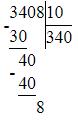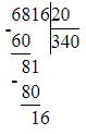 6816 : 2 : 10 = 340 (ост. 8)