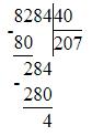 8284 : 4 : 10 = 207 (ост. 1)
