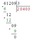 61209 : 3 : 100 = 203 (ост. 3)