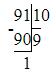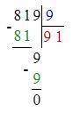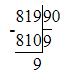 819 : 9 : 10 = 9 (ост. 1)