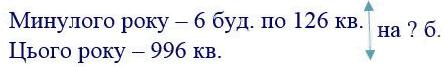 У районі міста минулого року звели 6 однакових будинків, по 126 квартир у кожному. Цього року там побудували 996 квартир. На скільки більше сімей отримали квартири в нових будинках цього року?
