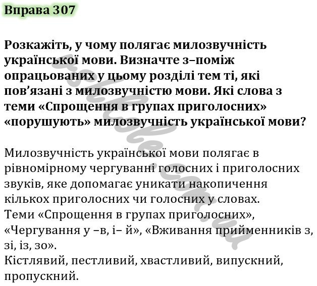 Вправа 307 українська мова Заболотний гдз 5 клас