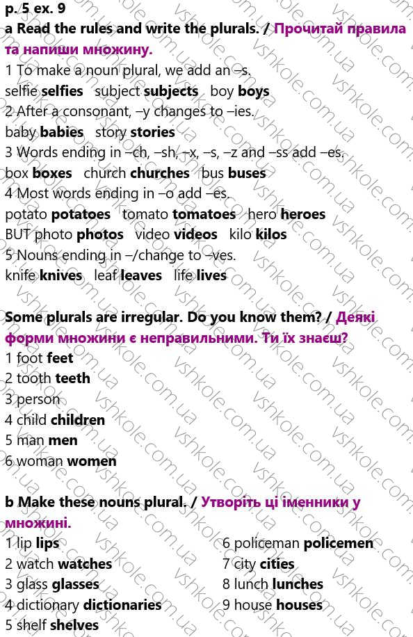 Сторінка 5 вправа 9 гдз 7 клас англійська мова Уілдон С. Шиптон П. 2024